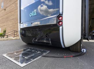 Oak Ridge National Laboratory researchers demonstrated their wireless charging technology on an autonomous electric vehicle for the first time in a project with Local Motors. |